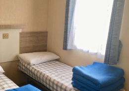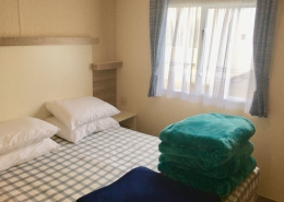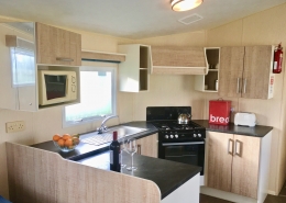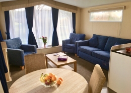 NEW IN 2012 These spacious, caravans are sure to impress. They have 2 bedrooms: a double with a kingsize bed and en suite toilet and a twin room, which will convert to a double. The family bathroom has a toilet, wash basin and a large shower cubicle. The large kitchen has a full size gas cooker and a microwave. As well as the comfortable 3 piece suite in the lounge, which incorporates a sofa bed, you’ll be thrilled with the view through the massive front windows. Heating is provided in every room.