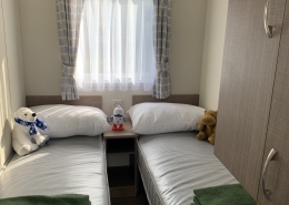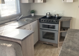 These 2022 caravans have 2 bedrooms: a double room and a twin room which will convert to a double. The bathroom has a shower, basin and toilet. Contemporary design and comfortable seating makes the lounge very cosy and there is a convenient pull out bed. There is a modern fully fitted kitchen. Every room has electric heating and there is double glazing throughout.