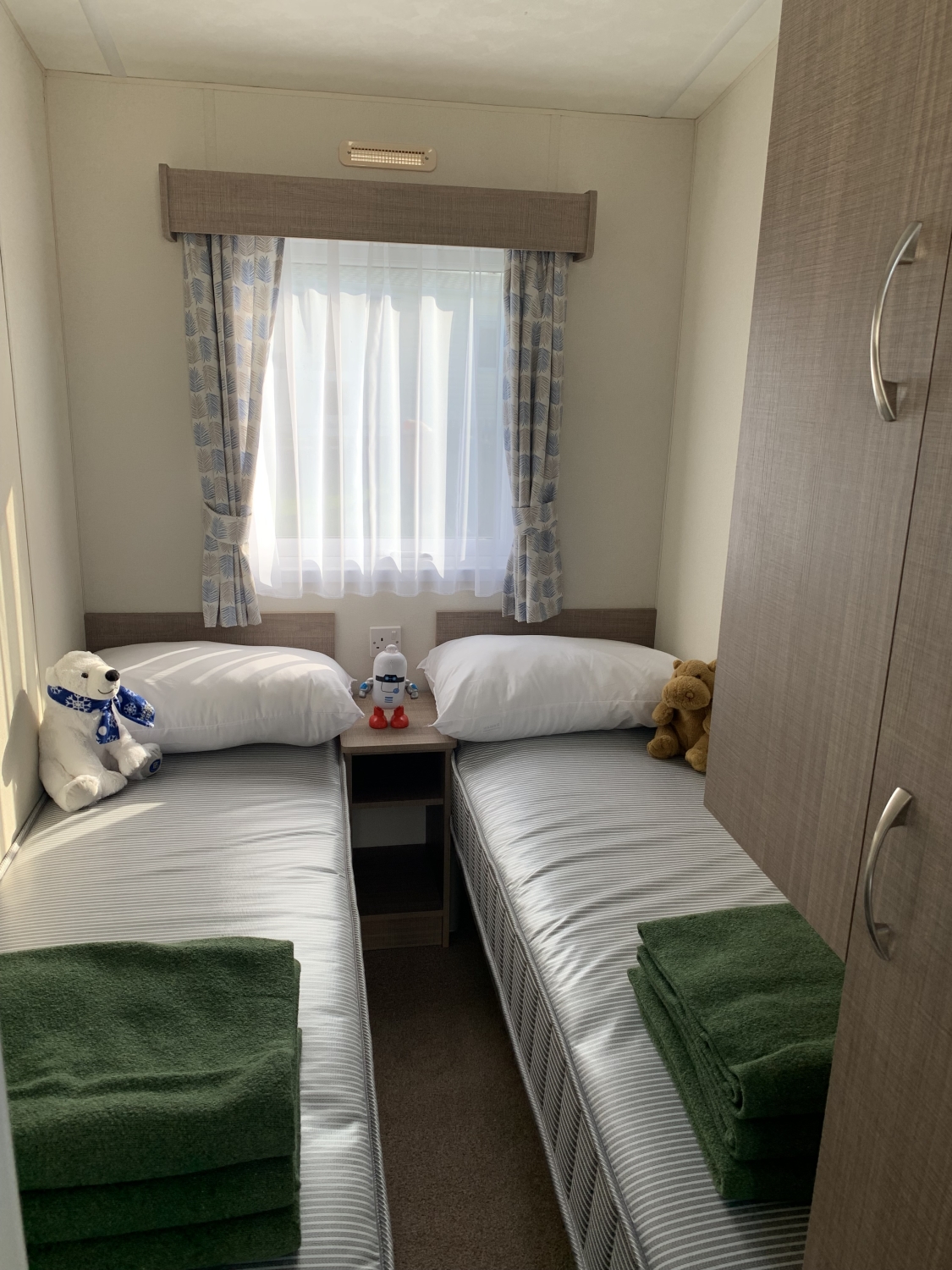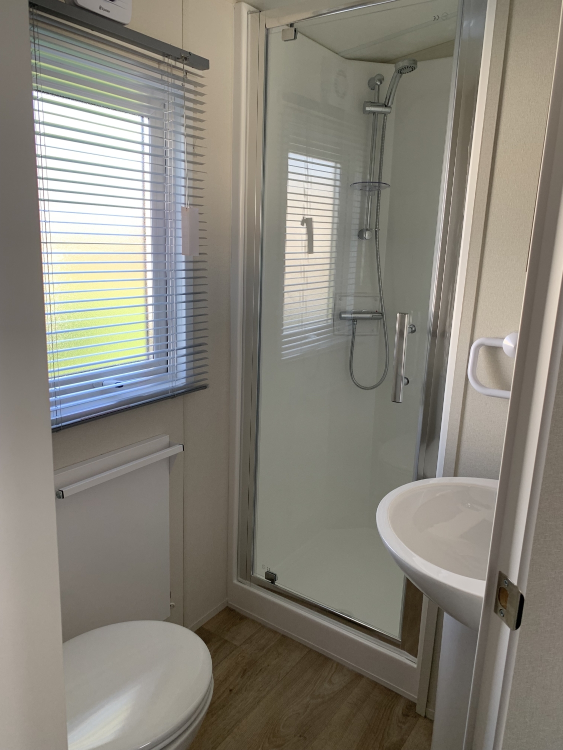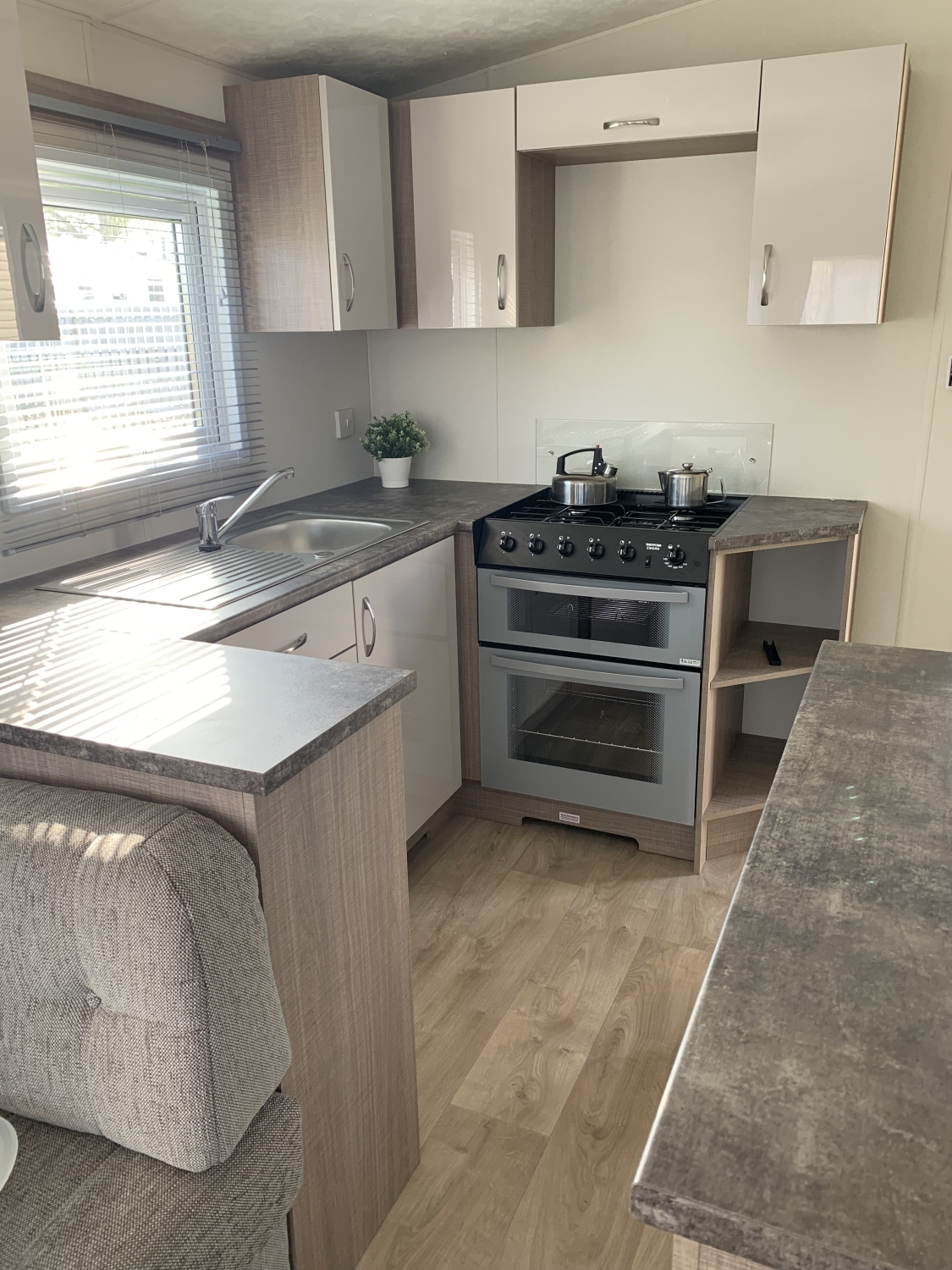 These 2022 caravans have 2 bedrooms: a double room and a twin room which will convert to a double. The bathroom has a shower, basin and toilet. Contemporary design and comfortable seating makes the lounge very cosy and there is a convenient pull out bed. There is a modern fully fitted kitchen. Every room has electric heating and there is double glazing throughout.