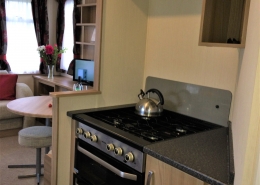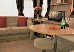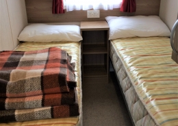 NEW IN 2016 These 2016 caravans are very chic. They have 2 bedrooms: a double room and a twin room which will convert to a double. Both bedrooms have plenty of storage space. The bathroom has a toilet, washbasin and shower cubicle. The well designed kitchen has a full size gas cooker and a microwave. In the stylish lounge there is comfortable seating which incorporates a fold-out bed and a dining area. Heating is provided in every room.