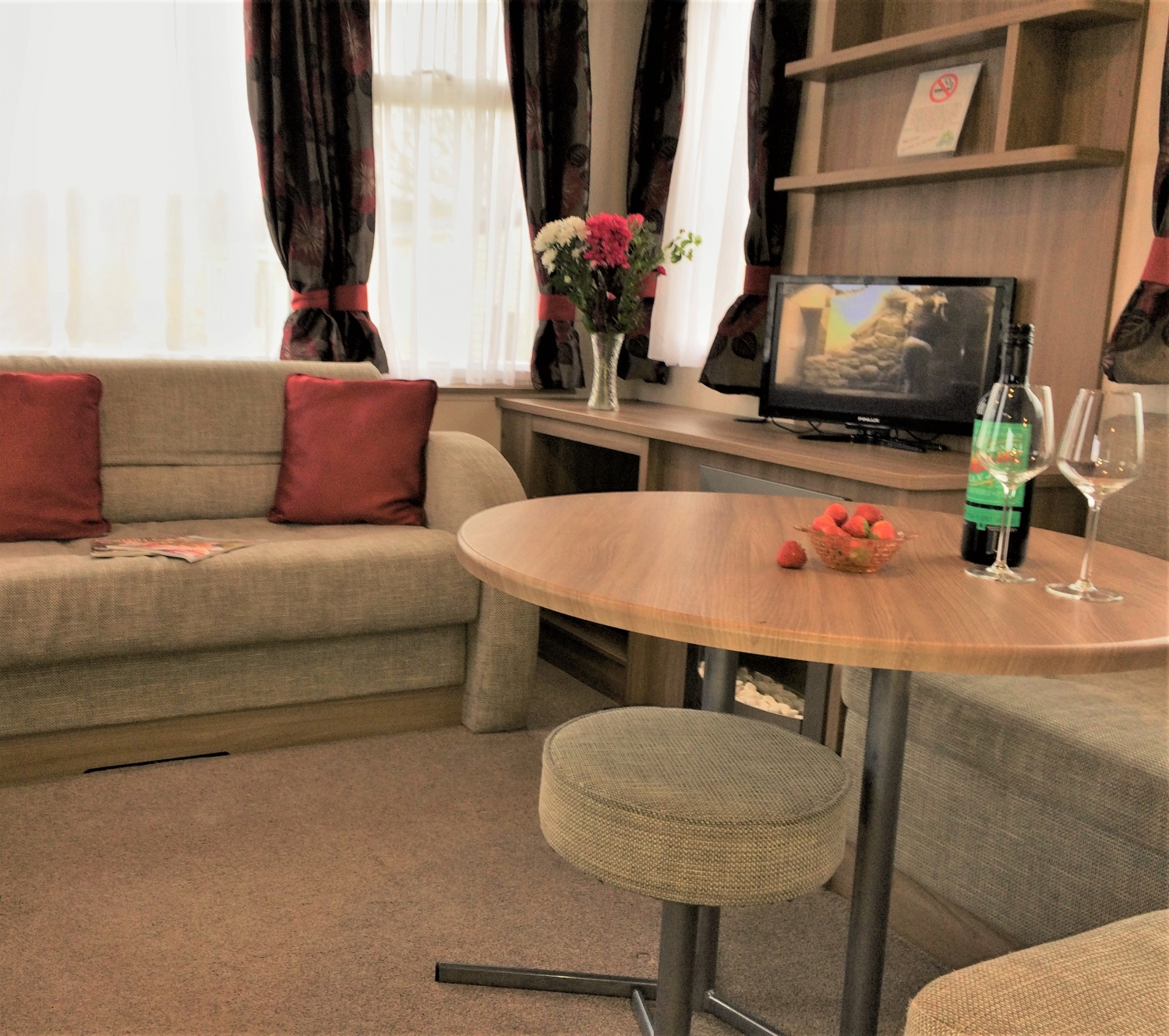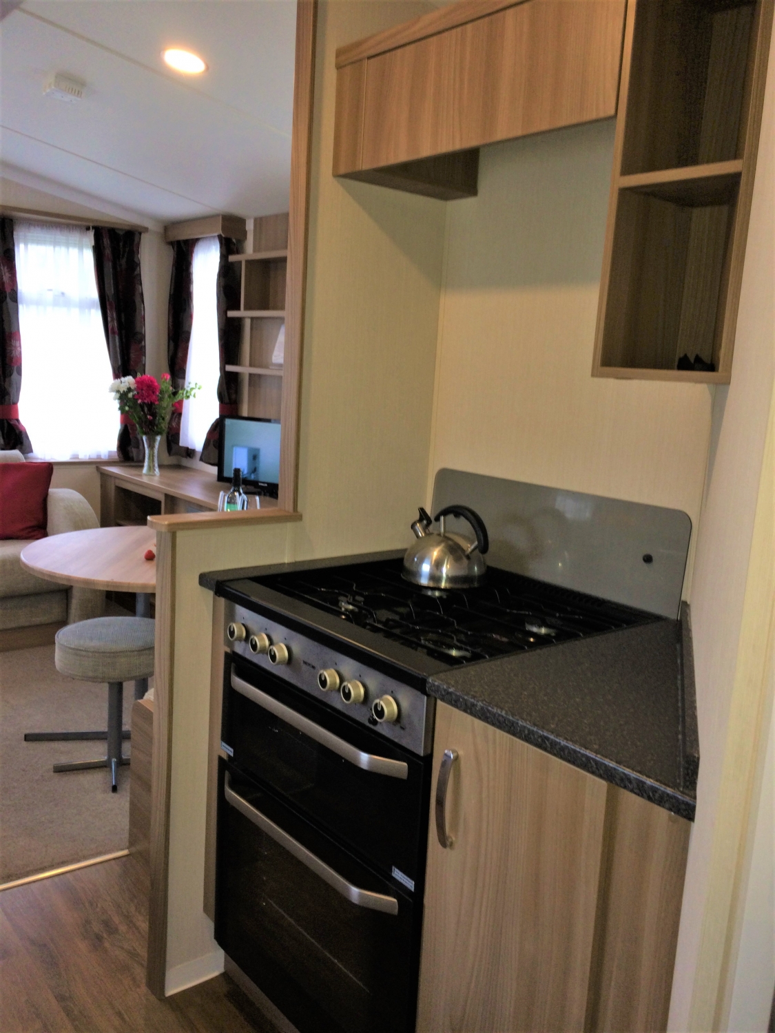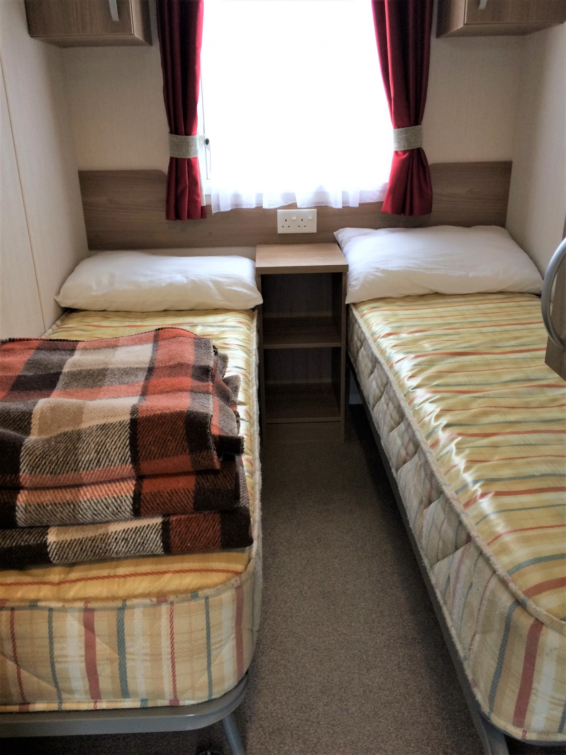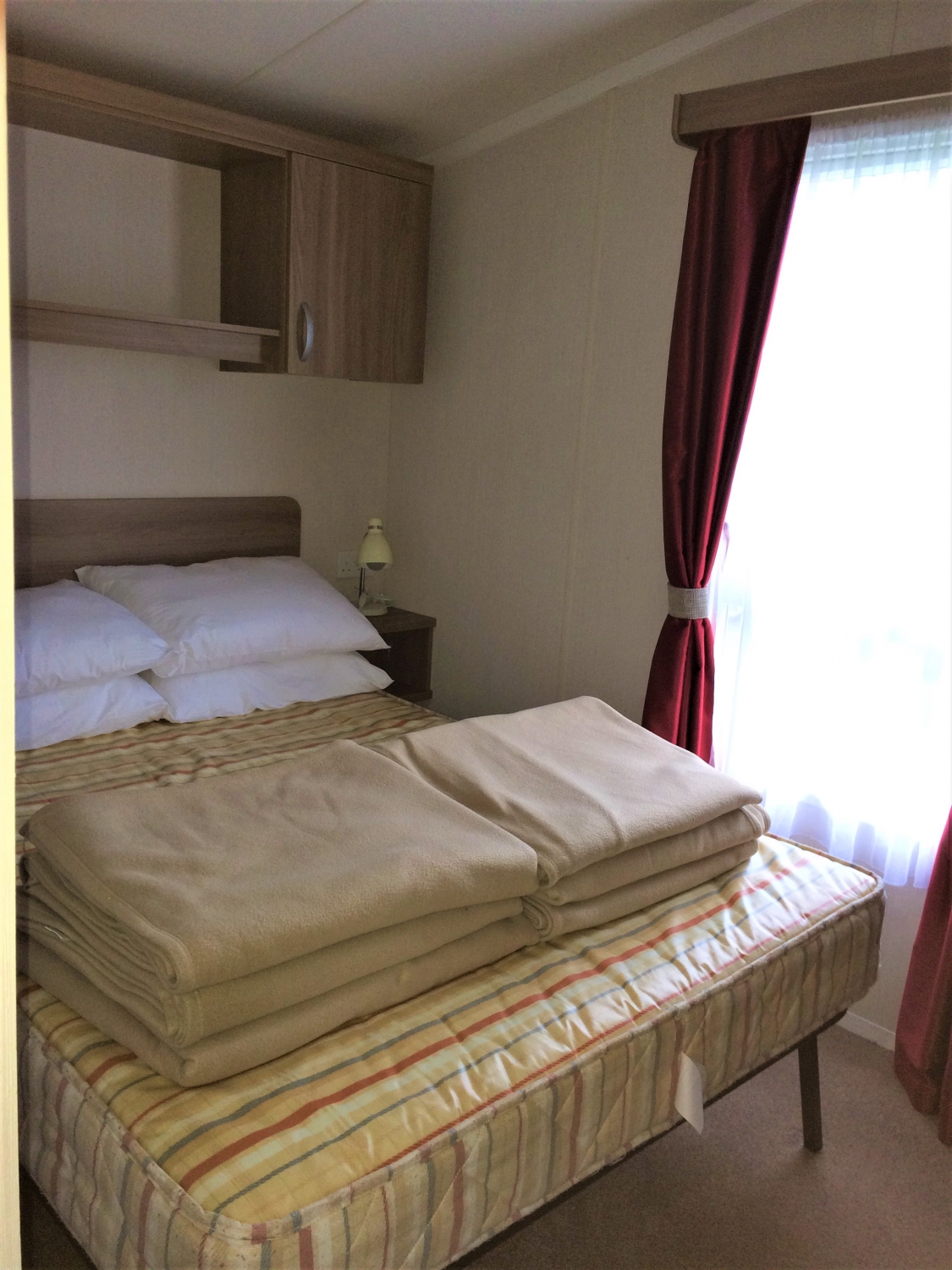 NEW IN 2016 These 2016 caravans are very chic. They have 2 bedrooms: a double room and a twin room which will convert to a double. Both bedrooms have plenty of storage space. The bathroom has a toilet, washbasin and shower cubicle. The well designed kitchen has a full size gas cooker and a microwave. In the stylish lounge there is comfortable seating which incorporates a fold-out bed and a dining area. Heating is provided in every room.