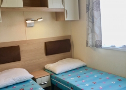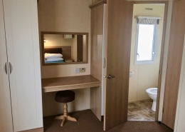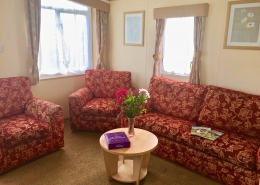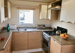 These large, impressive caravans have 3 bedrooms: a large double, with en suite toilet, and 2 twins, one of which converts to a double. The bathroom has a large shower cubicle, toilet and wash basin. There is a stylish, modern kitchen with a double-oven cooker and a microwave oven. The contemporary lounge has a sumptuous 3 piece suite incorporating a bed settee. There is heating in every room.