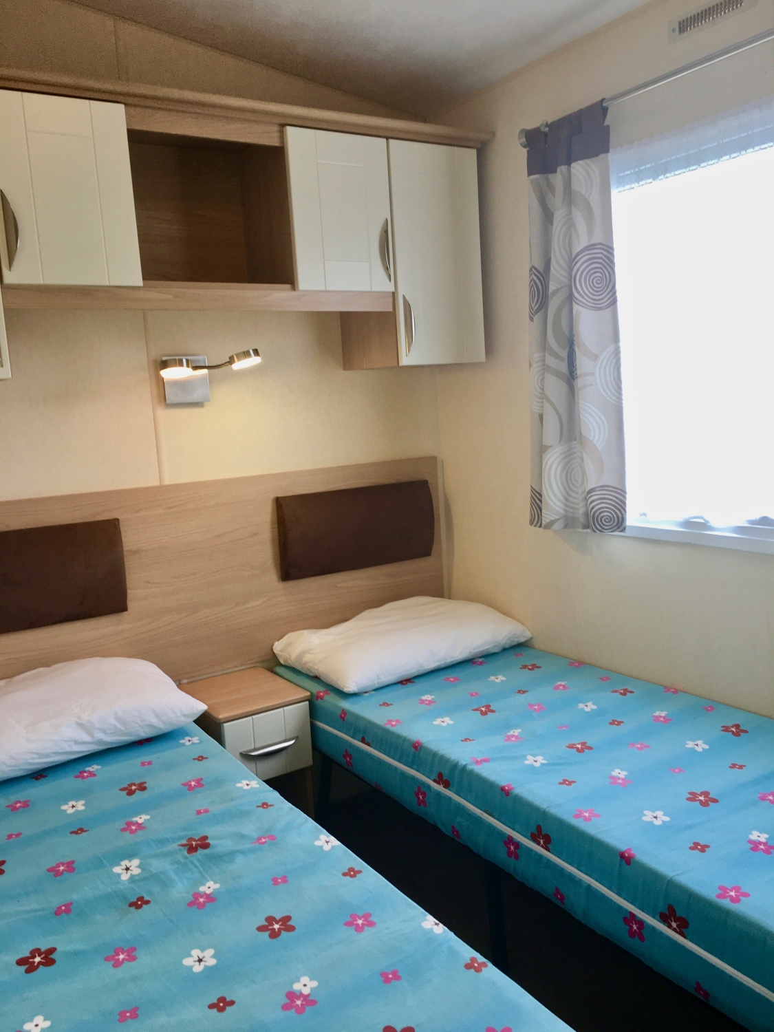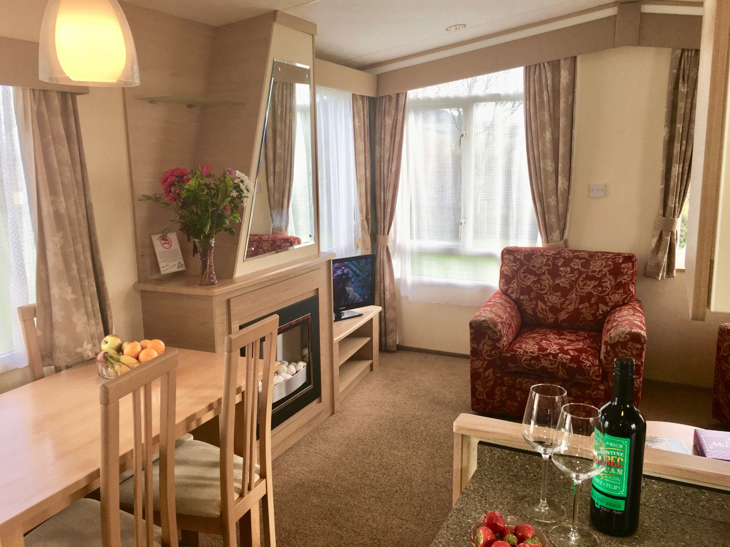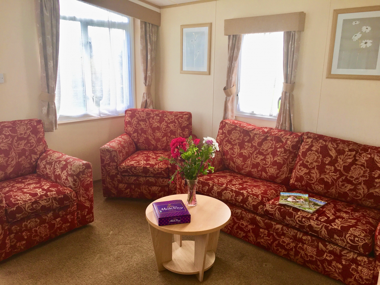 These large, impressive caravans have 3 bedrooms: a large double, with en suite toilet, and 2 twins, one of which converts to a double. The bathroom has a large shower cubicle, toilet and wash basin. There is a stylish, modern kitchen with a double-oven cooker and a microwave oven. The contemporary lounge has a sumptuous 3 piece suite incorporating a bed settee. There is heating in every room.