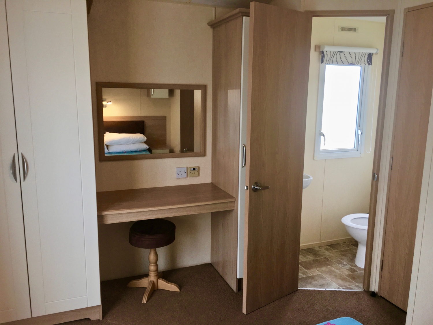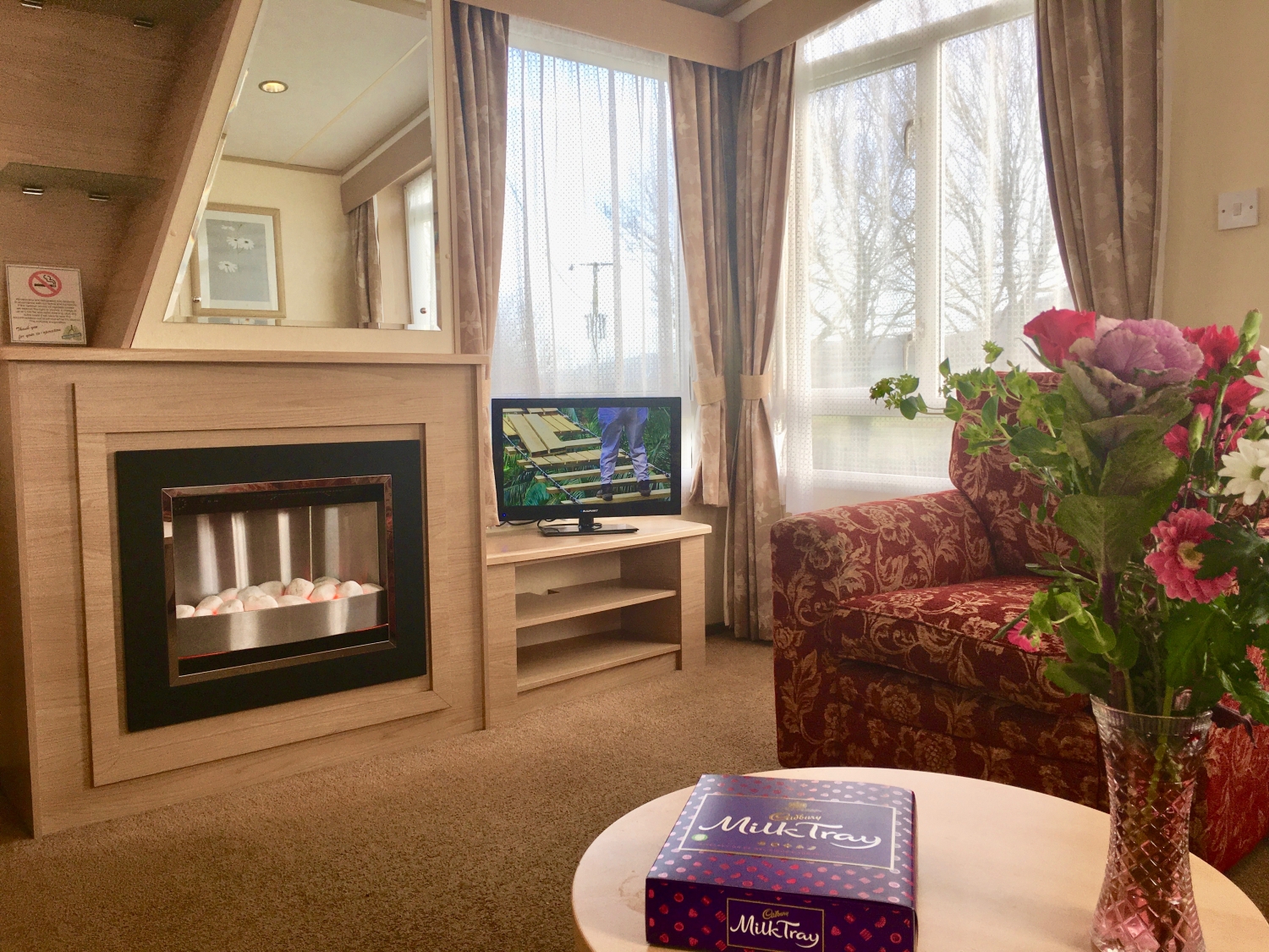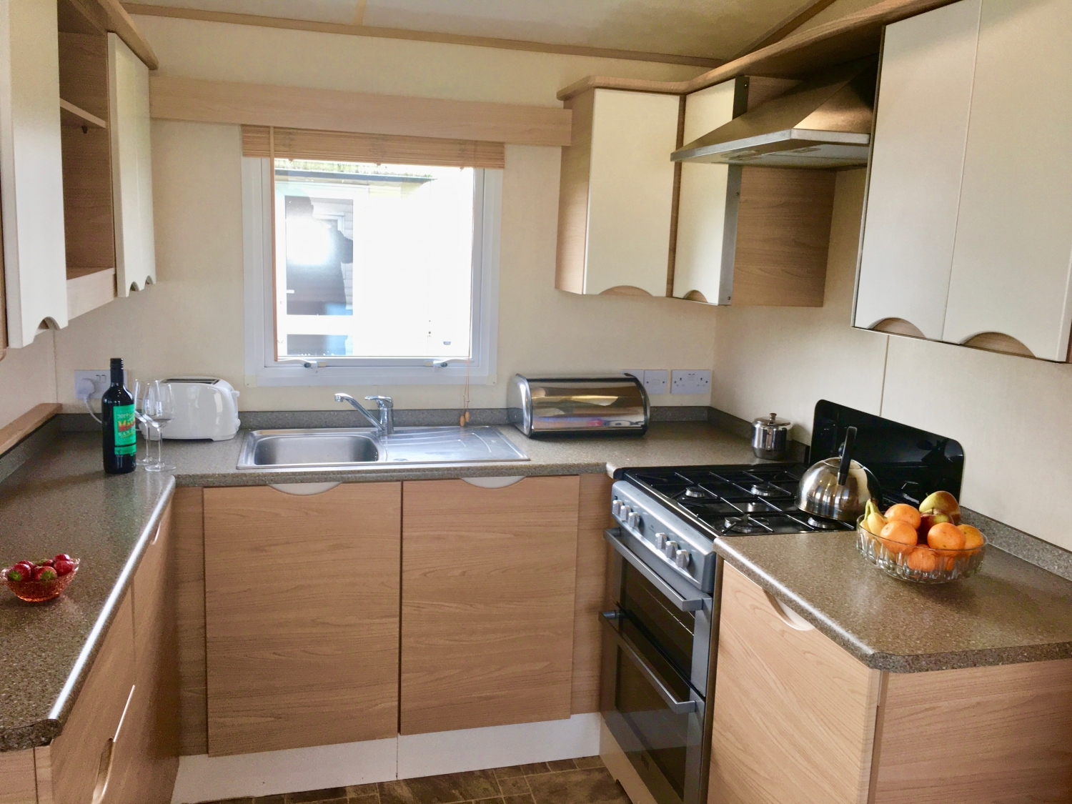 These large, impressive caravans have 3 bedrooms: a large double, with en suite toilet, and 2 twins, one of which converts to a double. The bathroom has a large shower cubicle, toilet and wash basin. There is a stylish, modern kitchen with a double-oven cooker and a microwave oven. The contemporary lounge has a sumptuous 3 piece suite incorporating a bed settee. There is heating in every room.